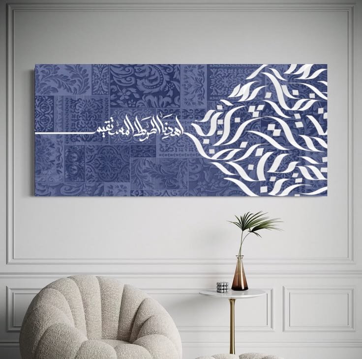 لوحة كتابات خط عربي ازرق