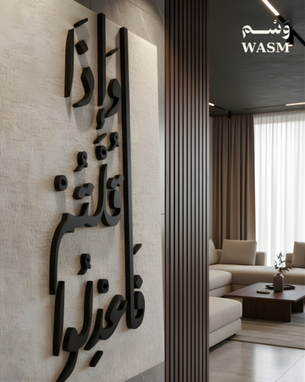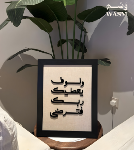 • عبارة عن برواز خشب اسود مع كتابة بارزة 4 ملم وخلفية بيج